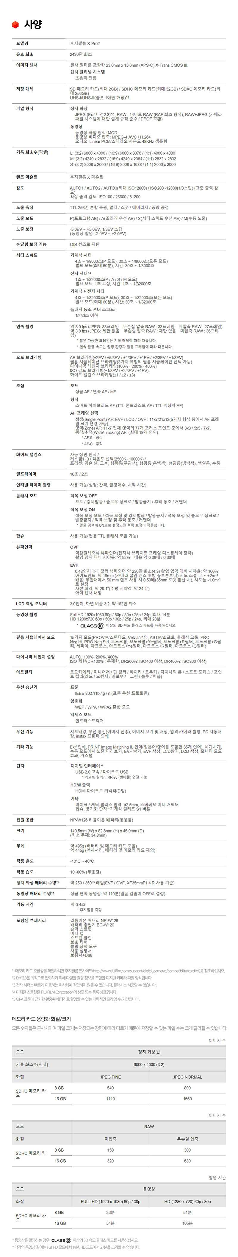 ��ǰ�� ������ 6�� �� ��õ� X-PRO1�� ������ NP-W126 ���� �״�� ����մϴ�.
