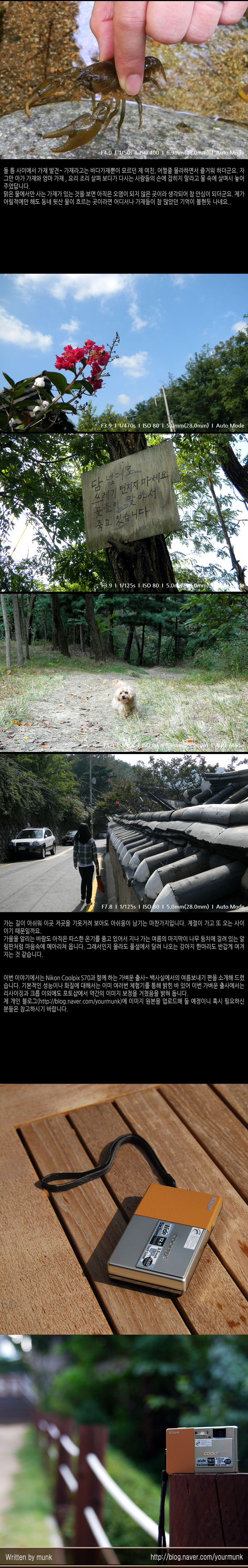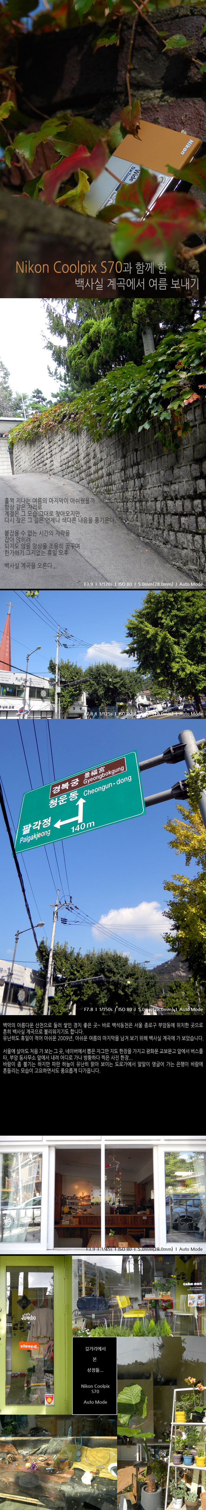 �̹� �̾߱���� Nikon Coolpix S70�� �Բ� �ϴ� ������ ���~ ���ǿ����� ���������� ���� �Ұ��� �帳�ϴ�. �⺻���� �����̳� ȭ���� ���ؼ��� �̹� ������ ü��⸦ ���� ���� �� �־� �̹� ������ ��翡���� ������¡�� ũ�� �̿ܿ��� ���伥���� �ణ�� �̹��� ������ �������� ���� �Ӵϴ�.