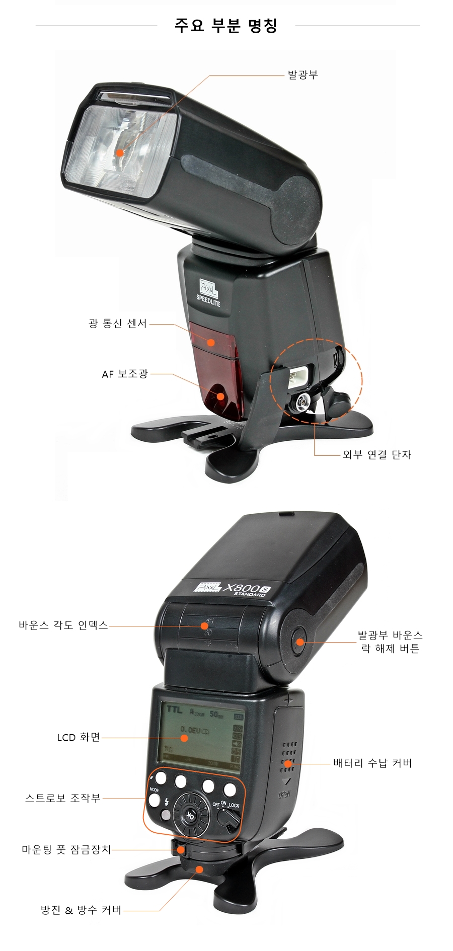 �ȼ� X800S�� ���� �ٿ �� ���� ��ư�� ������ ��� ������ ���� 90 ~ -7��, �¿� 360���� ������ �� �ֽ��ϴ�.