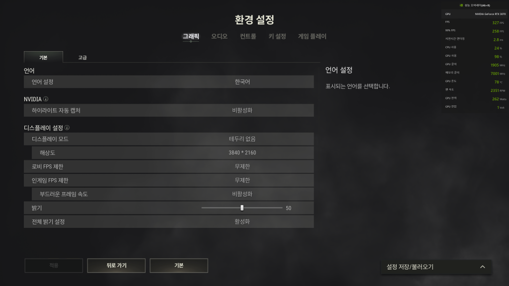 �ƹ����� �ֺ� ���������� ������ �ִ� �� ������ ���� ���� ���� �������ϴ�. ������ ���� ���ϴ� FPS�� ���������� ���� ���� 60 �̻��� FPS�� ������ �־����ϴ�.