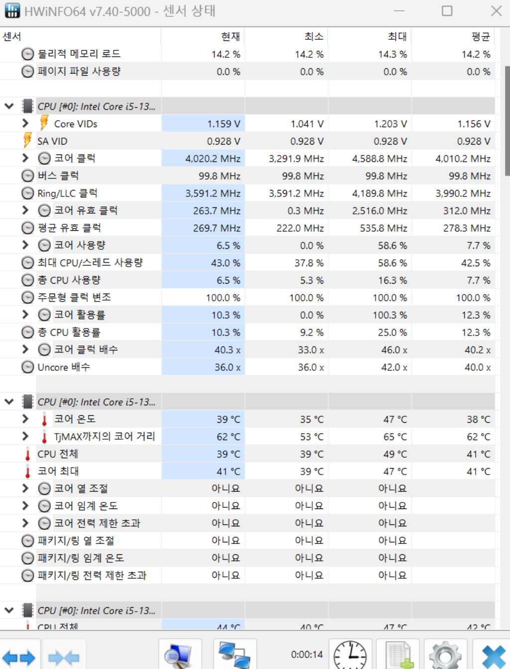 CPU ��뷮�� 46%���µ� ~ ����̱���. �̷��� �� 5���� ������ ���� ���Ѻôµ� i5-13400F�� ������ ���ֿ̹����� ���ɵ� ���� �����������ϴ�.