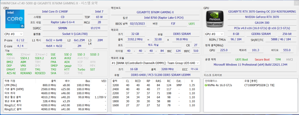 ������CPU i5-13400F�� RTX3070�� �������� �� 5���� ������ �����غý��ϴ�.