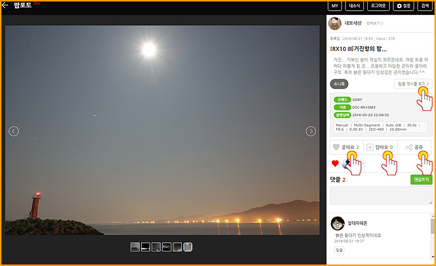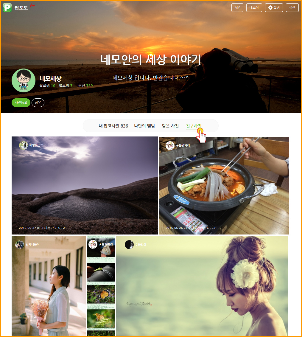 ���� ������ “�ν�Ÿ�׷�”, “�ø�Ŀ” “500px” “����Ʈ” ��� ����� �������̽��� �����εǾ� ���� ���� ����, �̿� �Ͻ� �� �ֵ��� �Ͽ����ϴ�. ������� ���ڳ� ȸ������ ���� ��ſ� Ŀ�´�Ƽ�� ���� ��ȹ�� ���ڿ� Ưȭ�� �� �ϳ��� ���� ���� �������Դϴ�.