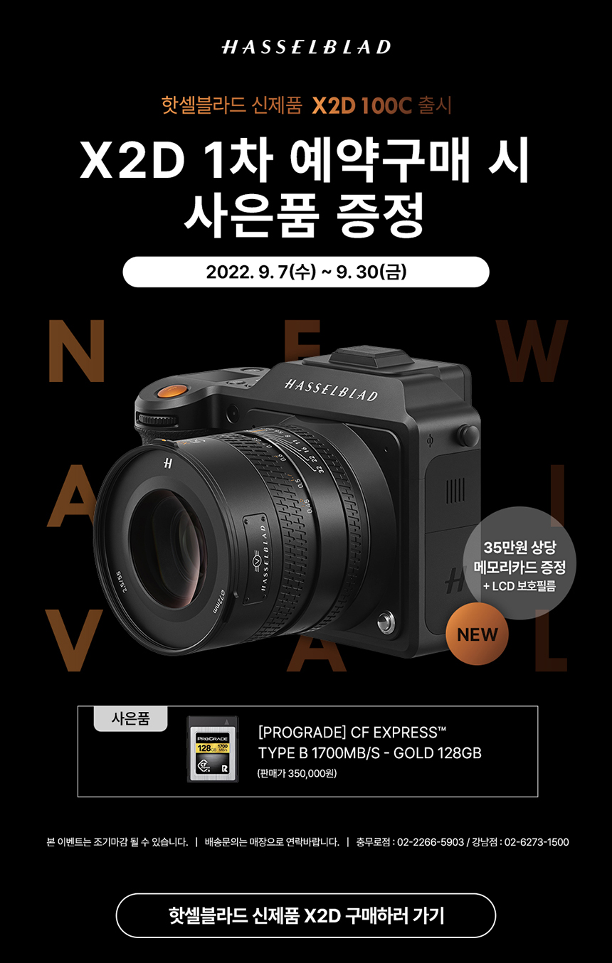[�ּ������ ����ǰ X2D 100C ���� �� ����ǰ ���� �̺�Ʈ] Hasselblad ����ǰ X2D 100C ��� ������� �̺�Ʈ�� �����մϴ�. 1�� �������� ���� �� 35���� ����� ���α��̵� ��ī�带 �帳�ϴ�. |