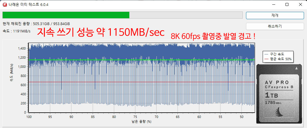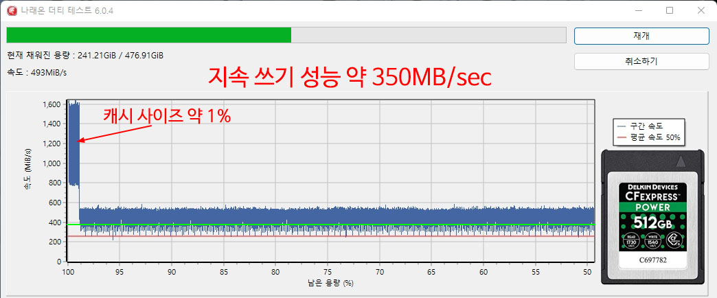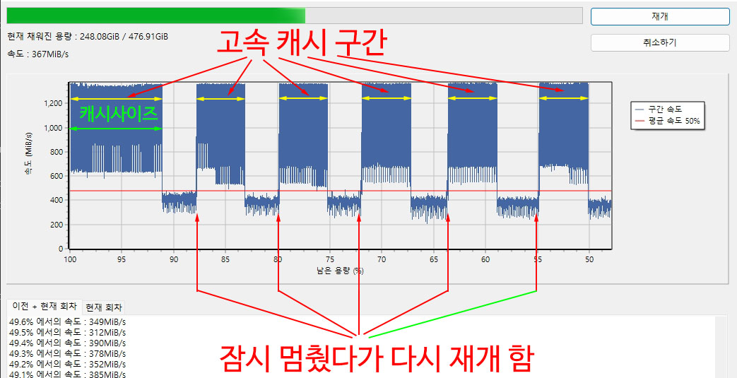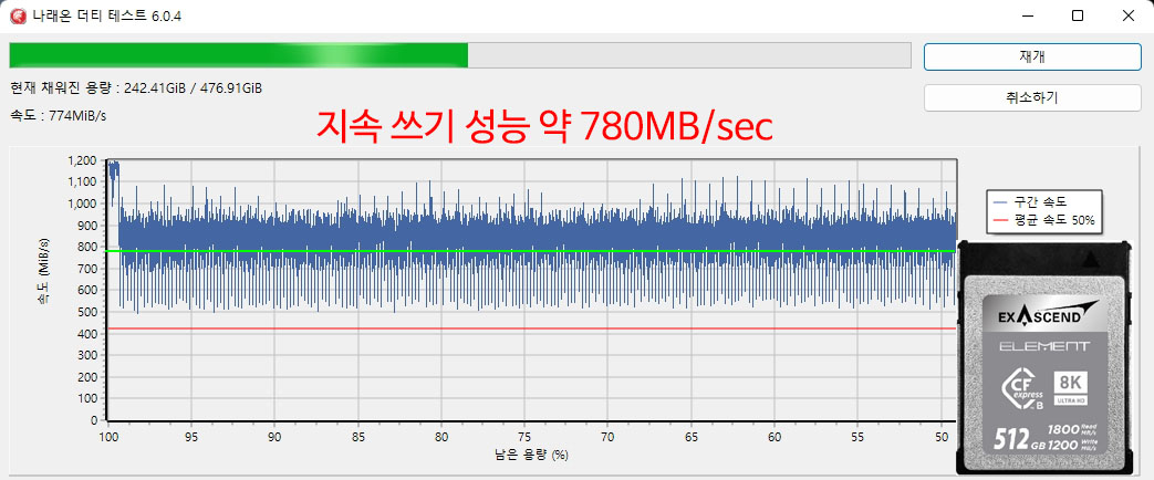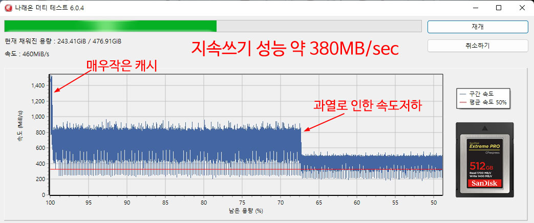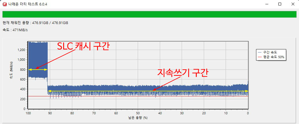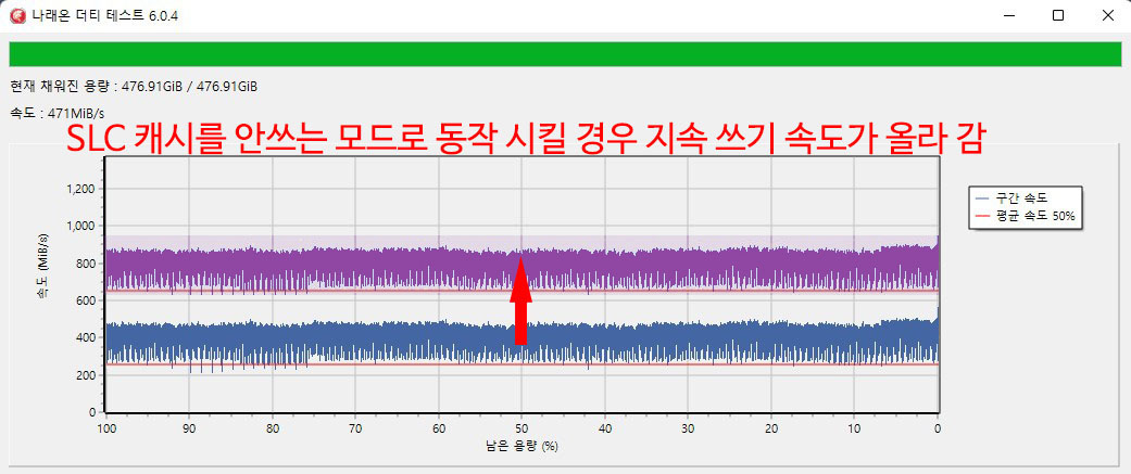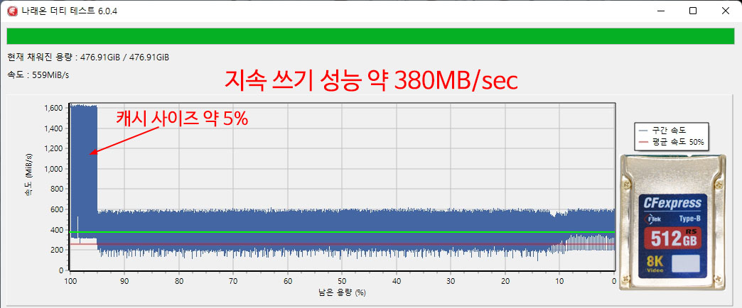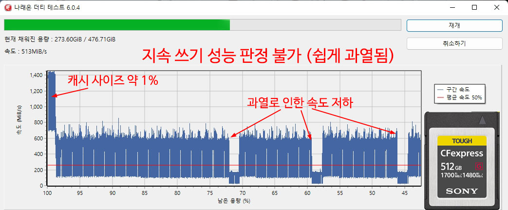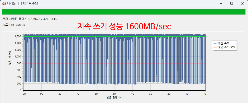 �� ���� �� ���ĺ��� ���� ����(Sustained Write) �ӵ��� �˼� �ֽ��ϴ�.