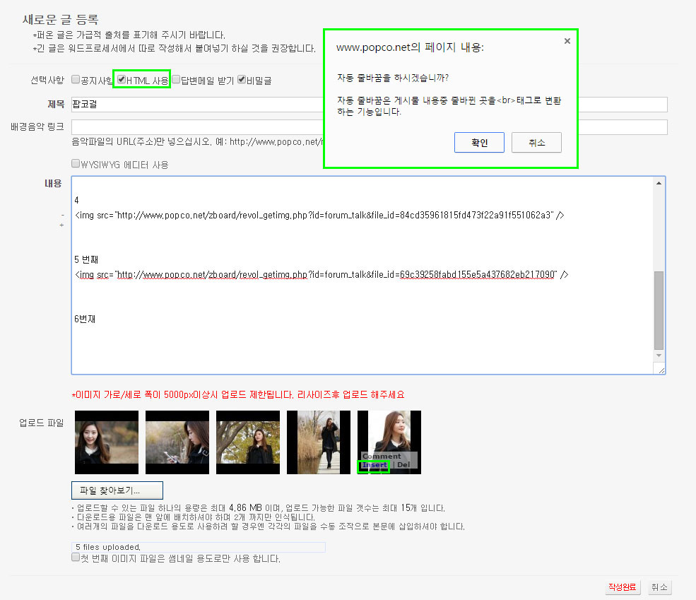 1.������ ã�� �ø���, ����� 'HTML ���" �� üũ�ѵ� '�ڵ� �ٹٲ��� �Ͻðڽ��ϱ�?" â�� �߸� Ȯ���� ������.
