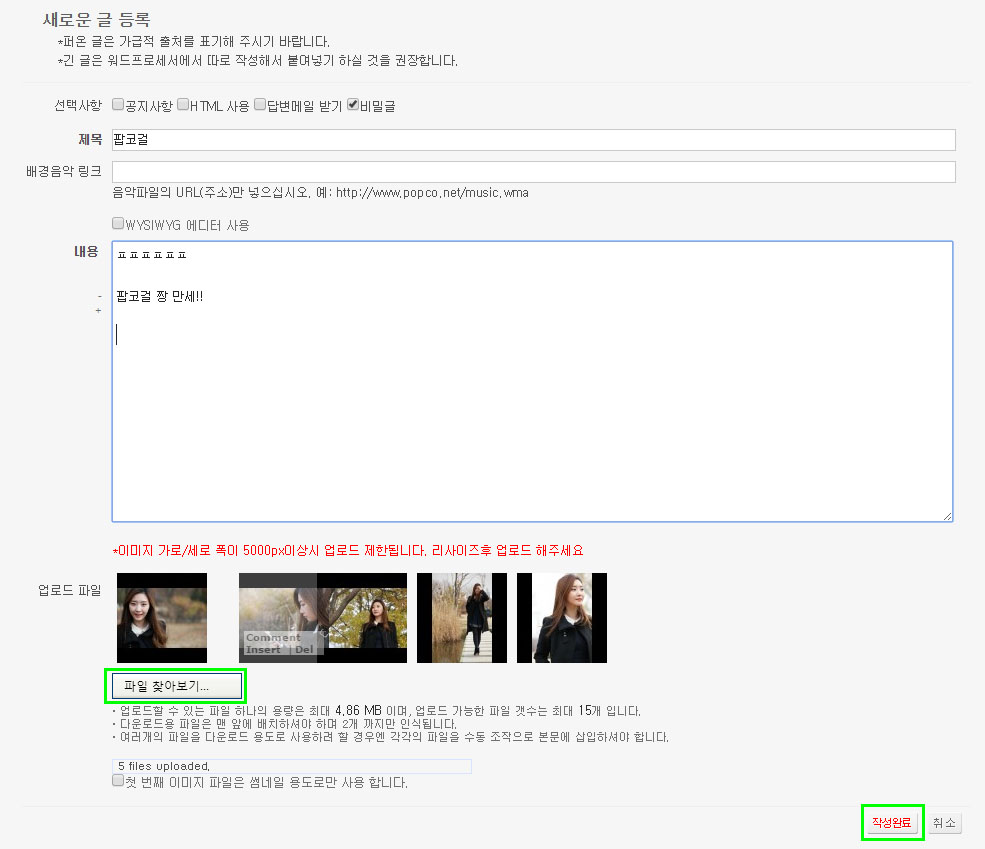 4.������ ������ ���� �� �� ��ٷ� '�ۼ��Ϸ�' ��ư�� ������.