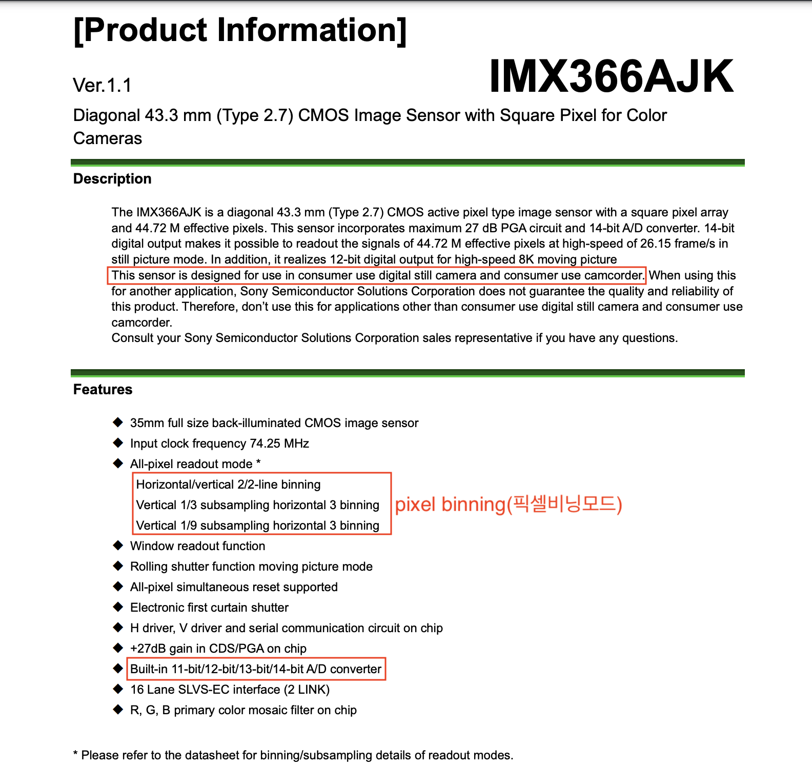 Readout mode 14�� Readout mode 8�� 2x2 �ȼ����带 �ɸ� �� C4K/120p��尡 �˴ϴ�. Ȯ���ϰ� �ȼ���� ����Դϴ�.