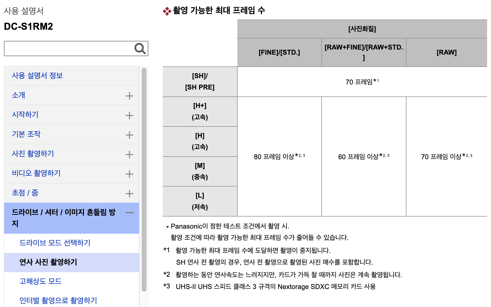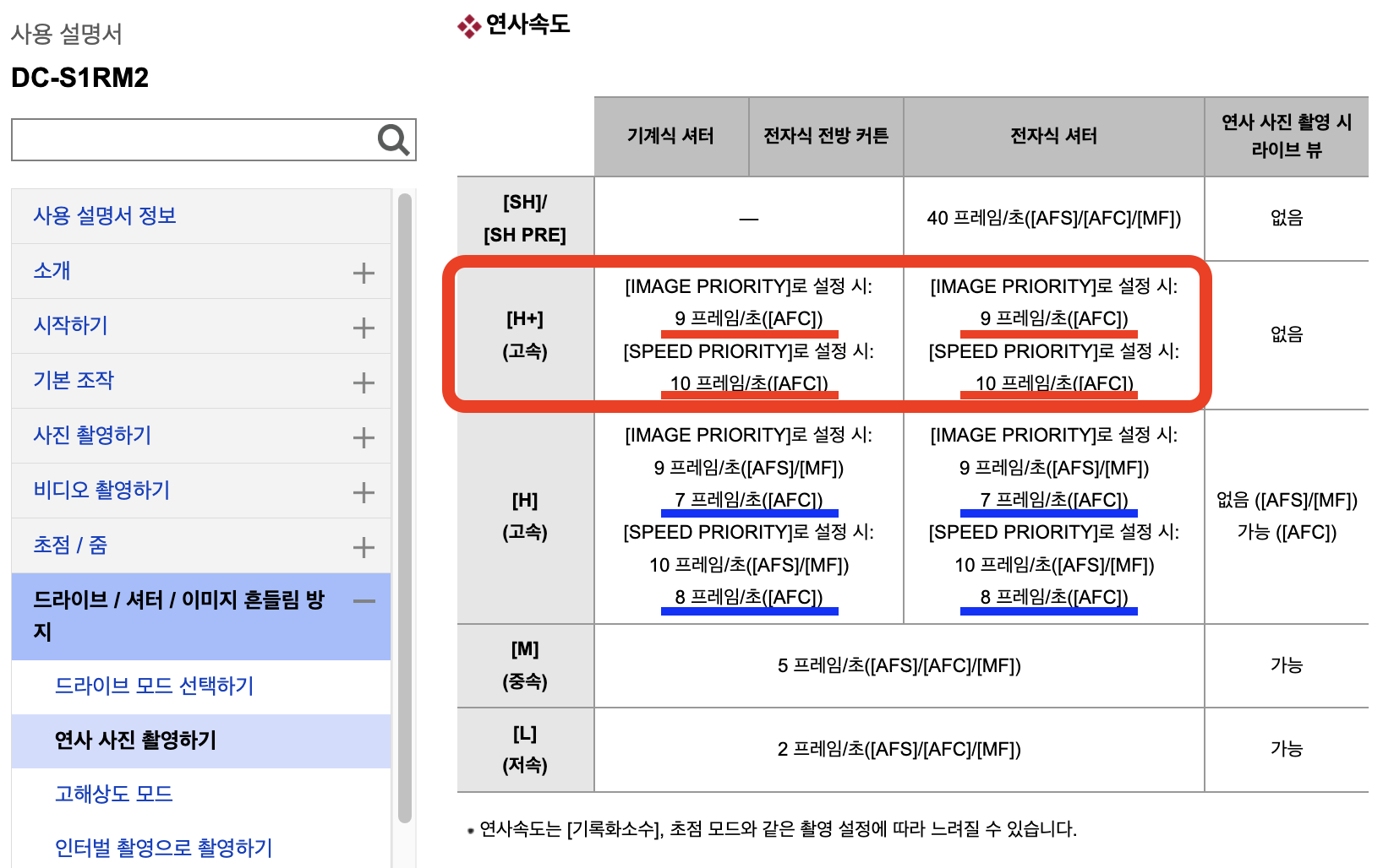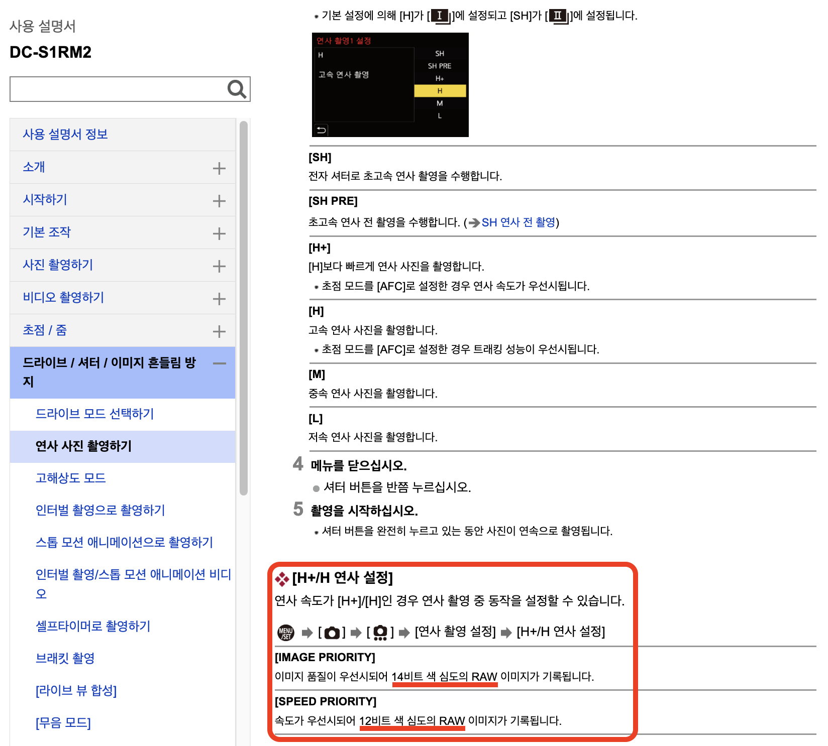 H+/H���ÿ� �̹���ǰ�� �켱�϶� 14bit RAW, �ӵ��켱�϶� 12bit RAW�� ��ϵ˴ϴ�.