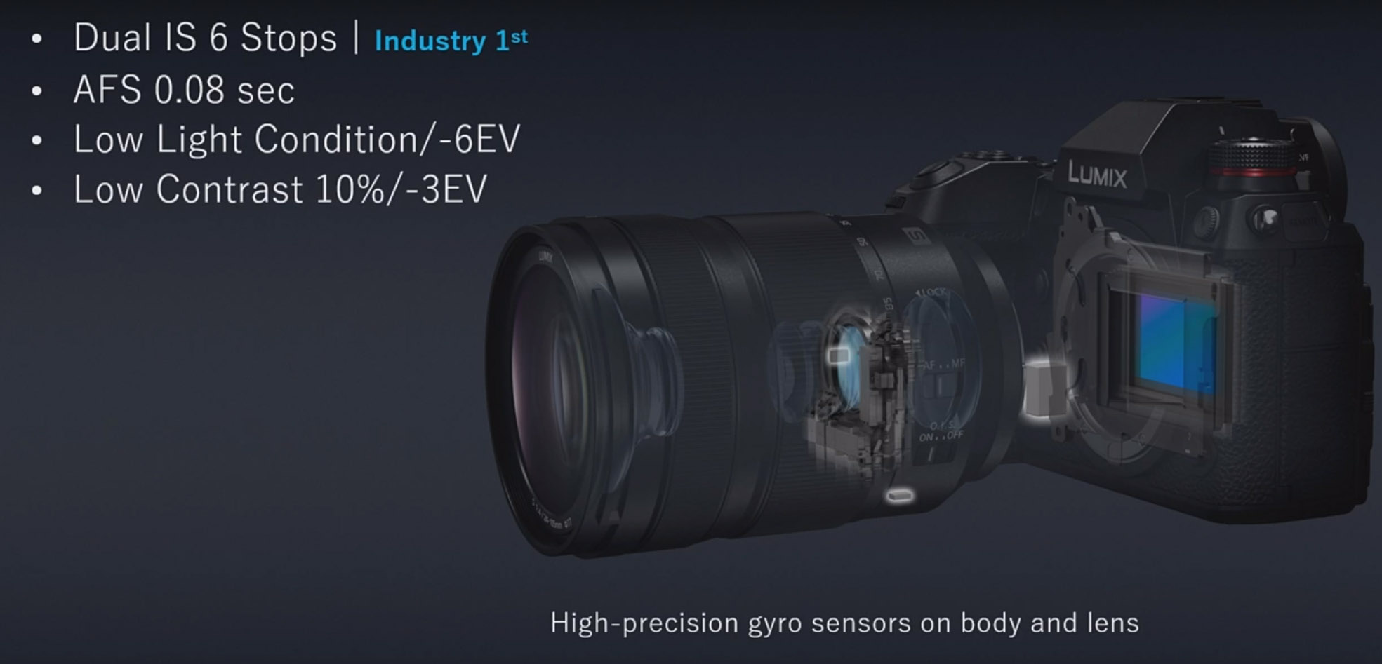 LUMIX S1R / S1�� ������ �ն��� ������ �����ϴ� Body IS (Image Stabilizer)�� ž���ߴ�. �ij��Ҵ��� ���̷� ������ �� �ƴ϶� �̹��� ������ ���ӵ��� �����κ��� ���� ��鸲 ������ ��Ȯ�ϰ� ����ϴ� �˰������� ����, ���� ��Ȯ�� ��鸲 ���� �� ������ ���������ٰ� �Ѵ�. �ٵ� ���� �ն��� ���� ������ �ִ� 5.5 ����. ����, ī���� �ٵ� IS (5 ��)��LUMIX S �ø��� ������ OIS (���� �̹��� ���º�������, 2 ��)�� ������ 5 �� Dual IS 2�� �ִ� 6������ �ն��� ���� ������ �����Ѵ�. 5 �� Dual IS 2�� 4K�� ����, ���� �� ���� �Կ� ��ο� ����Ǹ�, OIS�� ���� �ٸ� L- ����Ʈ ��� ����ϴ� ��쿡�� �ٵ� ���� ����� ����ȴ�.