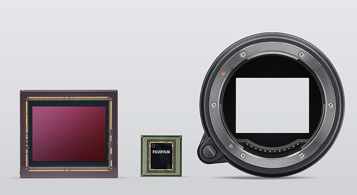 �����ʸ��� GFX100�� ���� ��ǥ�ߴ�. GFX100�� 35mm Ǯ������ ī�� ������ �� 1.7 ���� ������ ���� 43.8 × 32.9mm�� �̹��� ������ ž���� GFX �ø����� �÷��� �� �����ϰ� �ִ�.