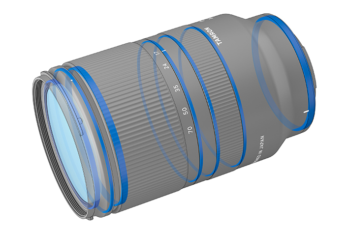 17-70mm F/2.8�� 12�� 16�� ������ ���� ������ ������ ������, 2���� GM(�۷��� ���� ��)����� 1���� ���� �� ��� ������ ��ġ�Ͽ�, �߾Ӻδ� ���� �ֺ��α��� �پ �ػ���� �����Ѵ�.