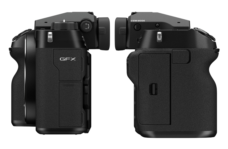 GFX100S�� ���� GFX 50S�� ����� ��Ÿ���� �ٵ� �������� ä���ߴ�. 150 × 104 × 87mmũ��� ����. GFX 50S �� EVF���� ũ�� 147.5 × 113.8 × 91.4mm [�� �ں� 41.6mm]�� ���� ������ ũ���.