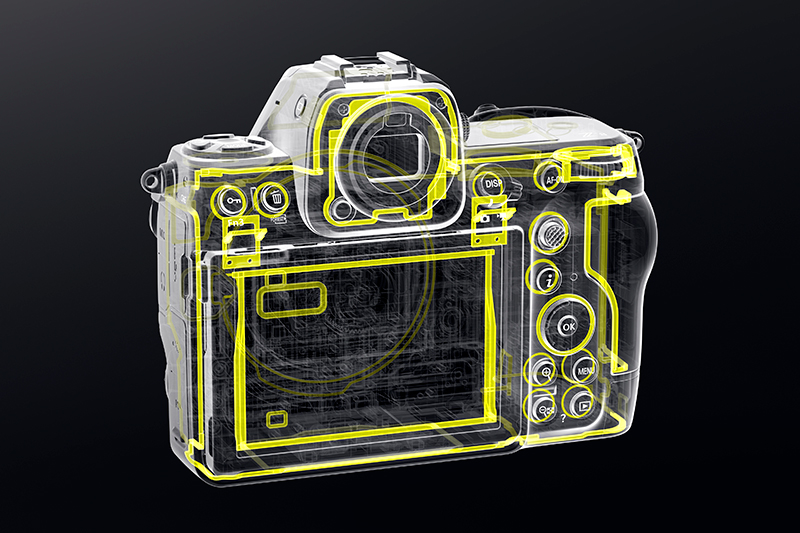 ���� ū Ư¡�� Z9 �� ������ �������μ� ��ȿ �� 4,571�� ȭ��(�� ȭ�Ҽ� 5,237�� ȭ��)�� ������ ���� FX ���� CMOS ����(35.9��23.9mm)�� ž��. ���� ǥ�鿡 Ư�� ������ ä���Ͽ� ���� ������ �氨. ������ ���� �����ϴ� ���� �ǵ带 ž��, ������ ������ ���� ����ó�� �����θ� ��ȣ�Ͽ� ���� ħ���� �����Ѵ�.
