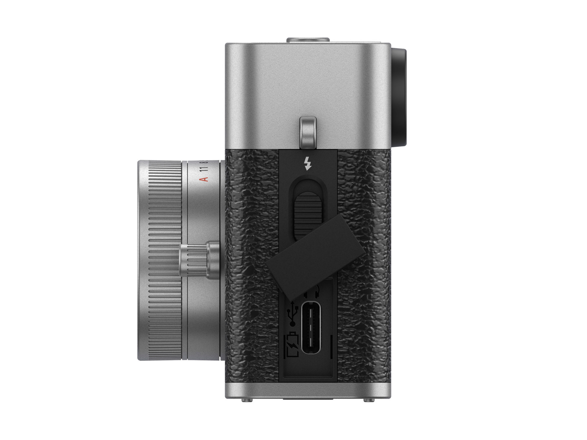 �ٵ� ���鿡 LED �÷���, �ٵ� ž�� �ݵ� ��, �����鿡 USB Type-C ���� ���� ž��. ���� �� ī��� SD ī��(UHS-I ����). ������ ��NP-W126S���μ� ���� ���δ� ���� �Կ� �ż��� �� 880��. �ٵ� ũ��� 105.8 �� 64.3 �� 45.8mm. ���Դ� �� 240g (���� �� ī�� ����).
